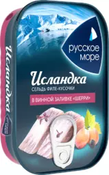 Сельдь филе-кусочки с/с в винной заливке Шерри Русское море 115г ж/б