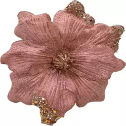 Цветок магнолия Christmasdeluxe на клипсе розовый, 20см