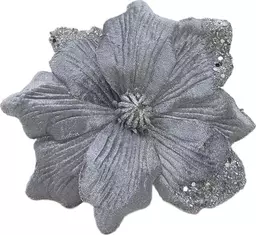 Цветок магнолия Christmasdeluxe на клипсе серый, 20см