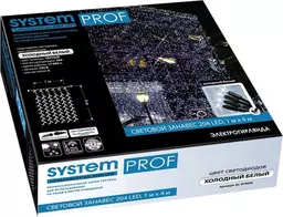Электрогирлянда Glos Световой занавес 204Led холодный белый, 1 x 4м