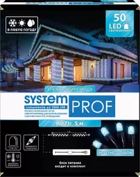 Электрогирлянда нить Glos System Prof 50Led голубой, 5м