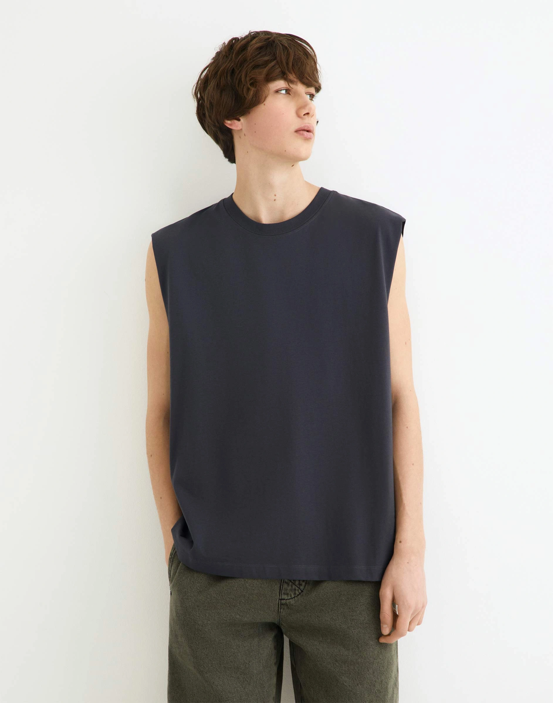 Тёмно-серая базовая майка oversize из джерси Btn002479-1