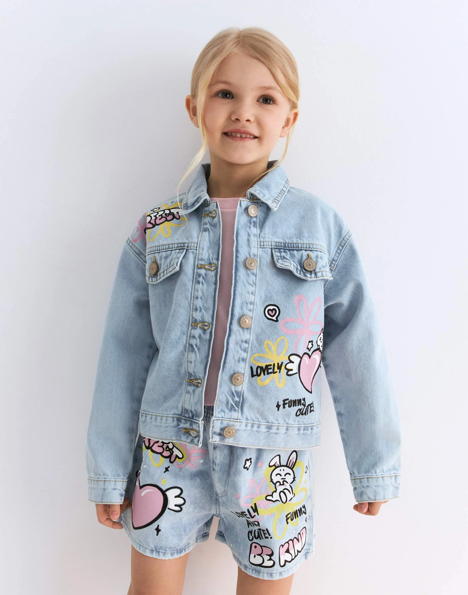 Джинсовая куртка oversize с принтом для девочки Gjc006973-1