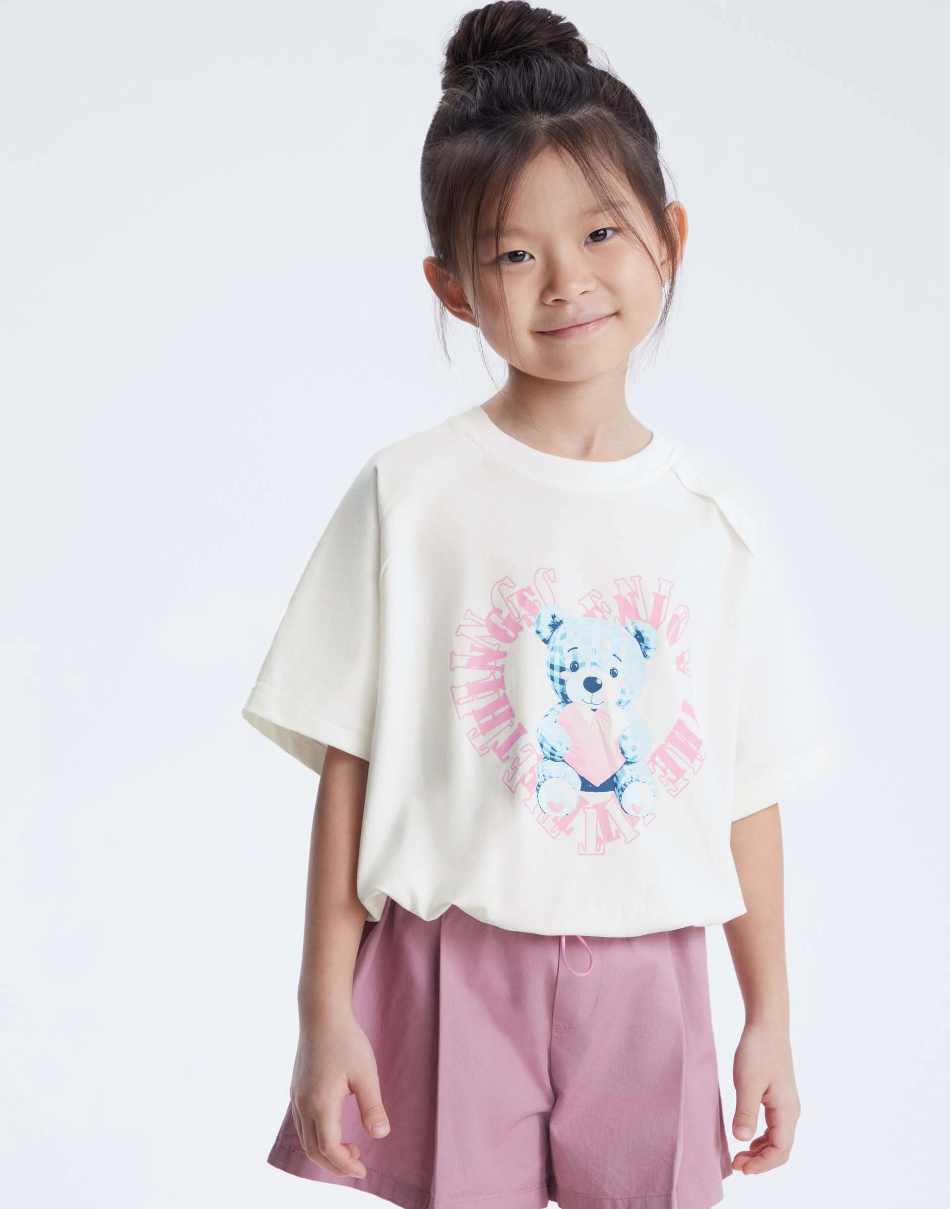 Молочная футболка oversize с принтом для девочки Gkt026391-2