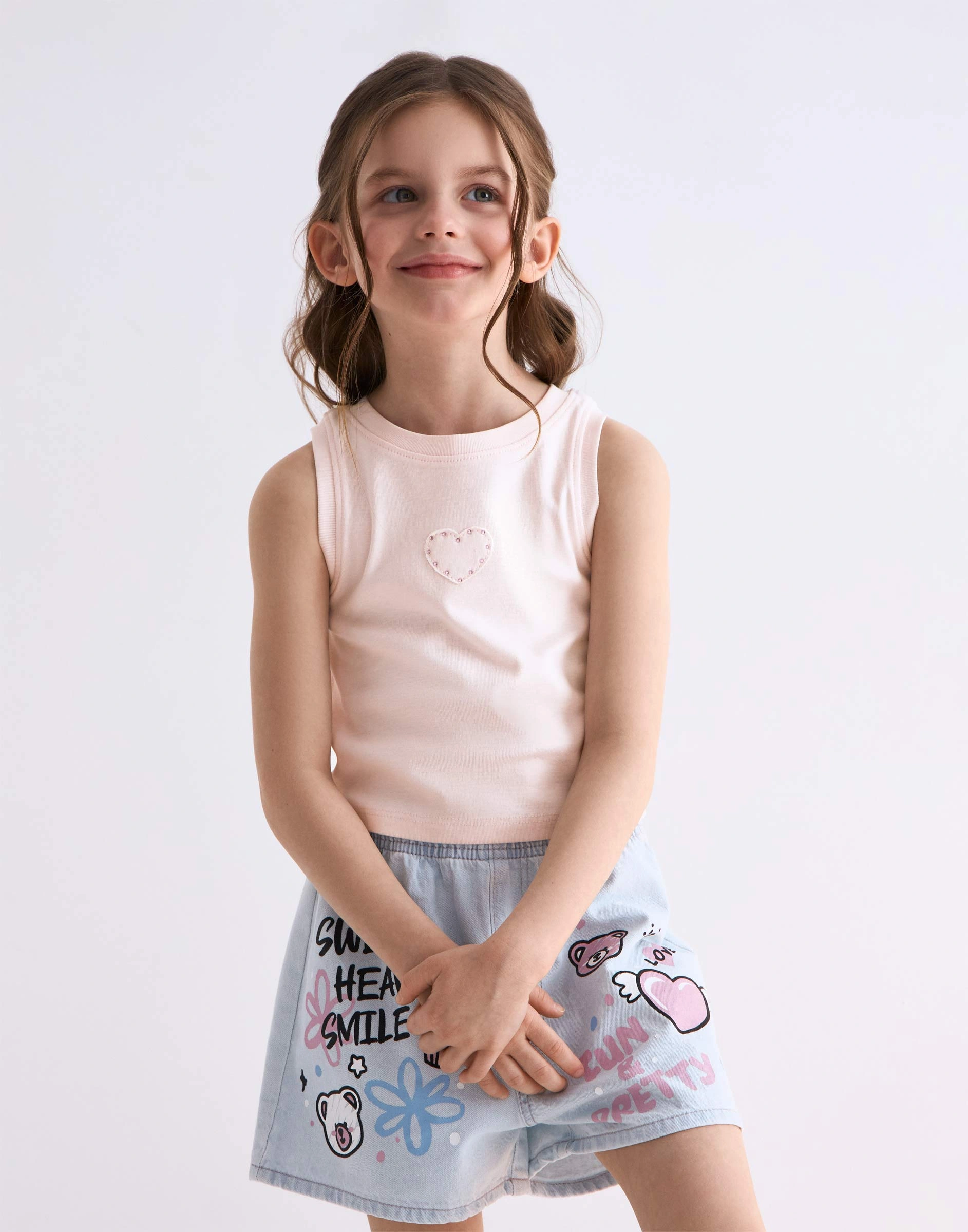 Светло-розовый топ в рубчик с аппликацией для девочки Gtn004528-1