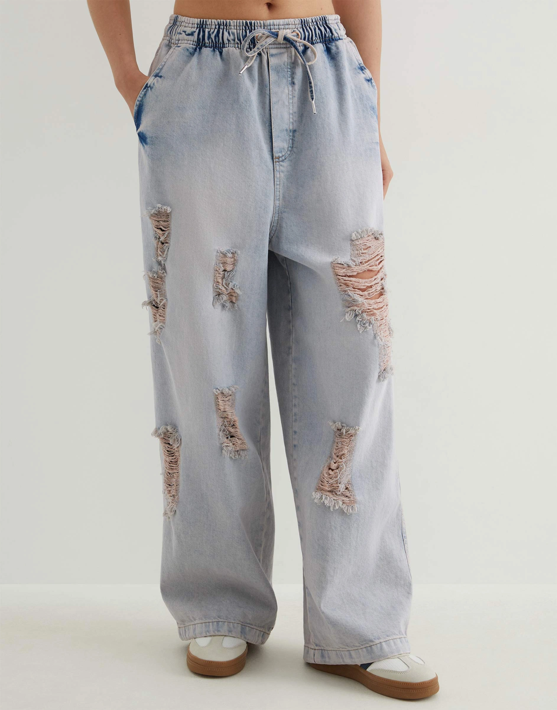 Джинсы Baggy с дырами и эластичным поясом Gjn033019-1