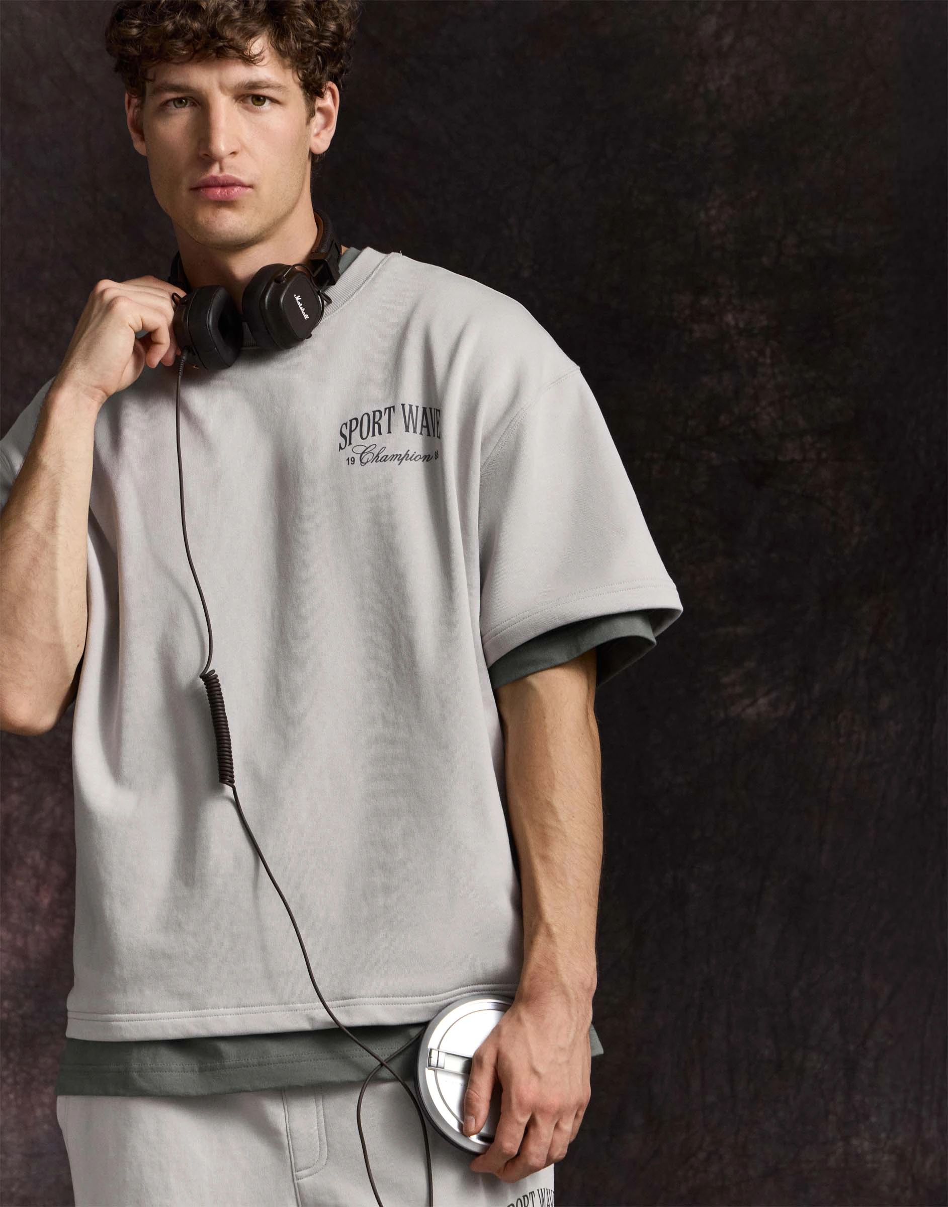 Светло-серый пуловер с коротким рукавом и принтом Bac014058-2
