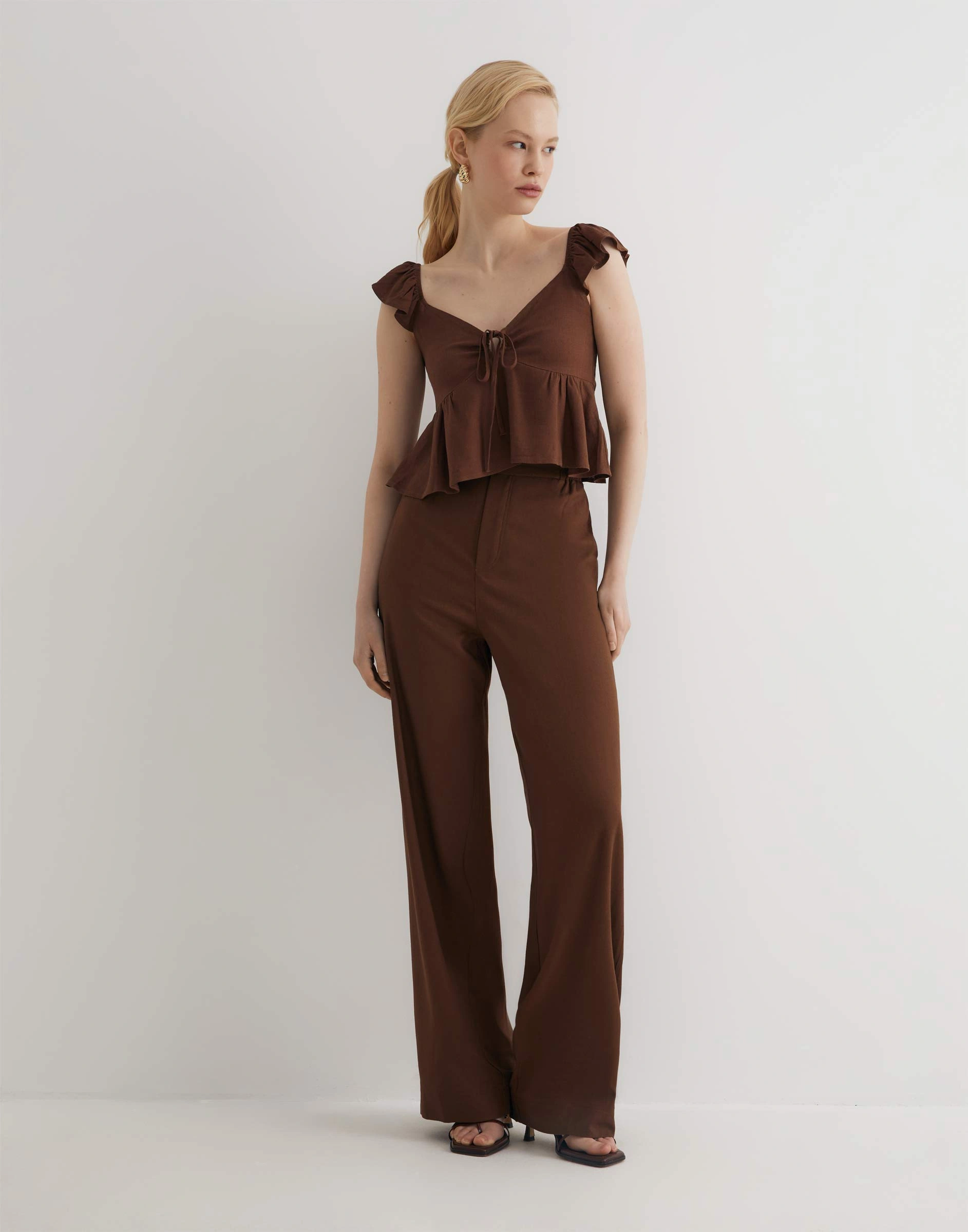 Коричневые брюки Wide leg со льном Gpt010620-1
