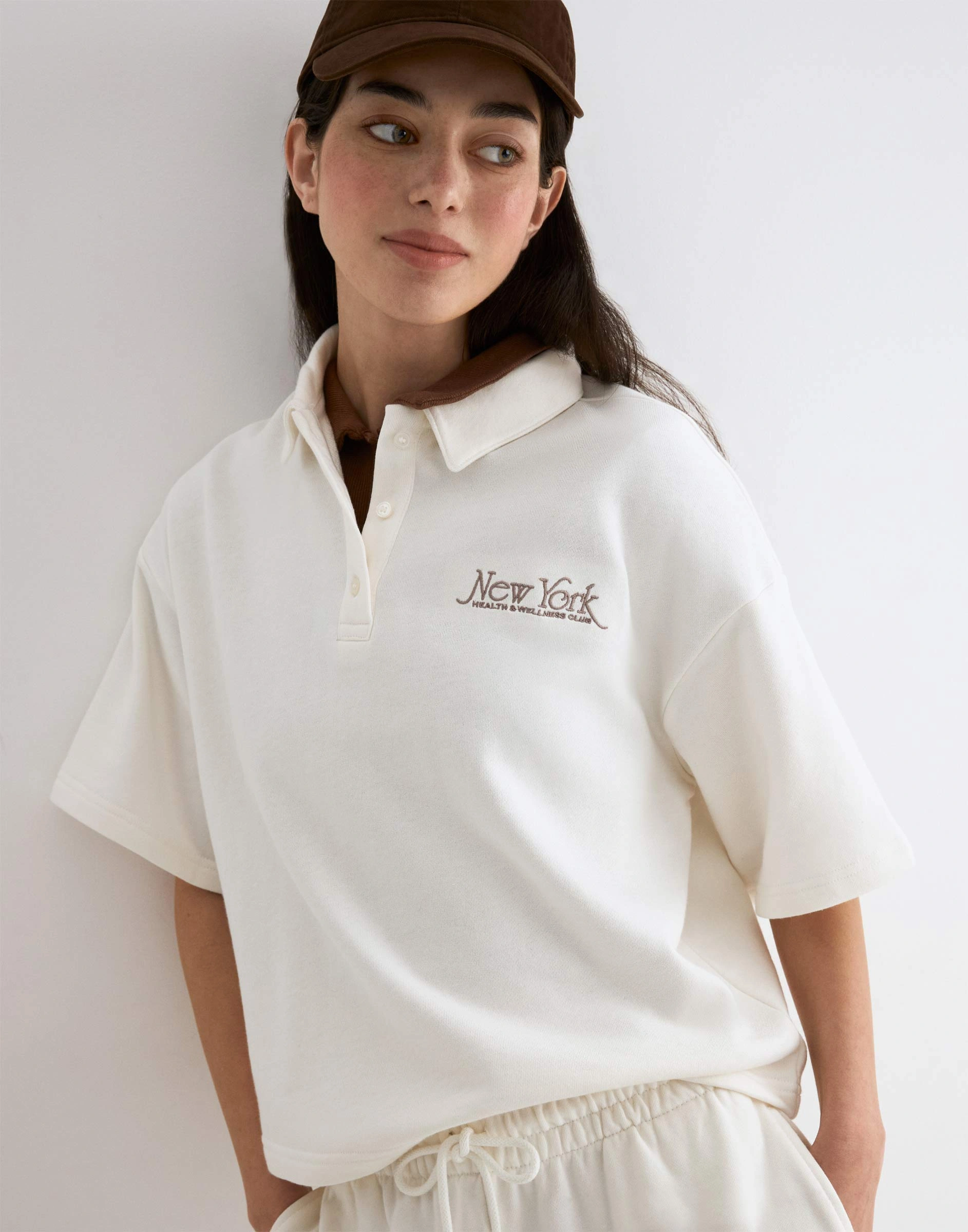 Молочная спортивная футболка-поло oversize с вышивкой Gac024648-2