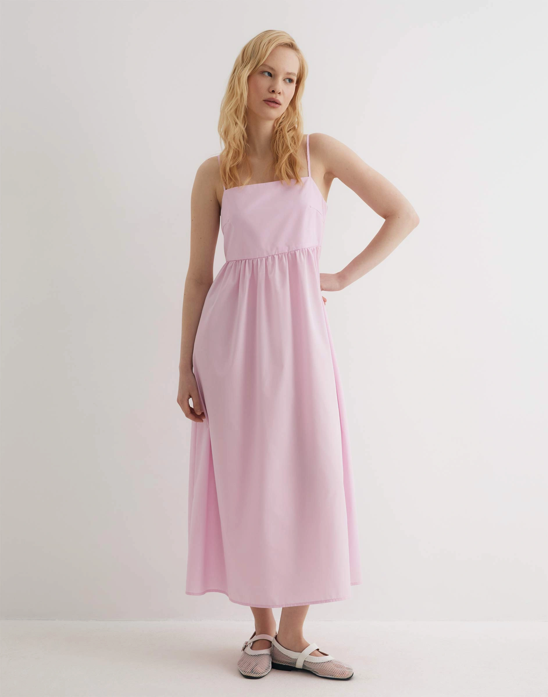 Светло-розовое платье миди с вытачками и завязками на спине Gdr030257-2