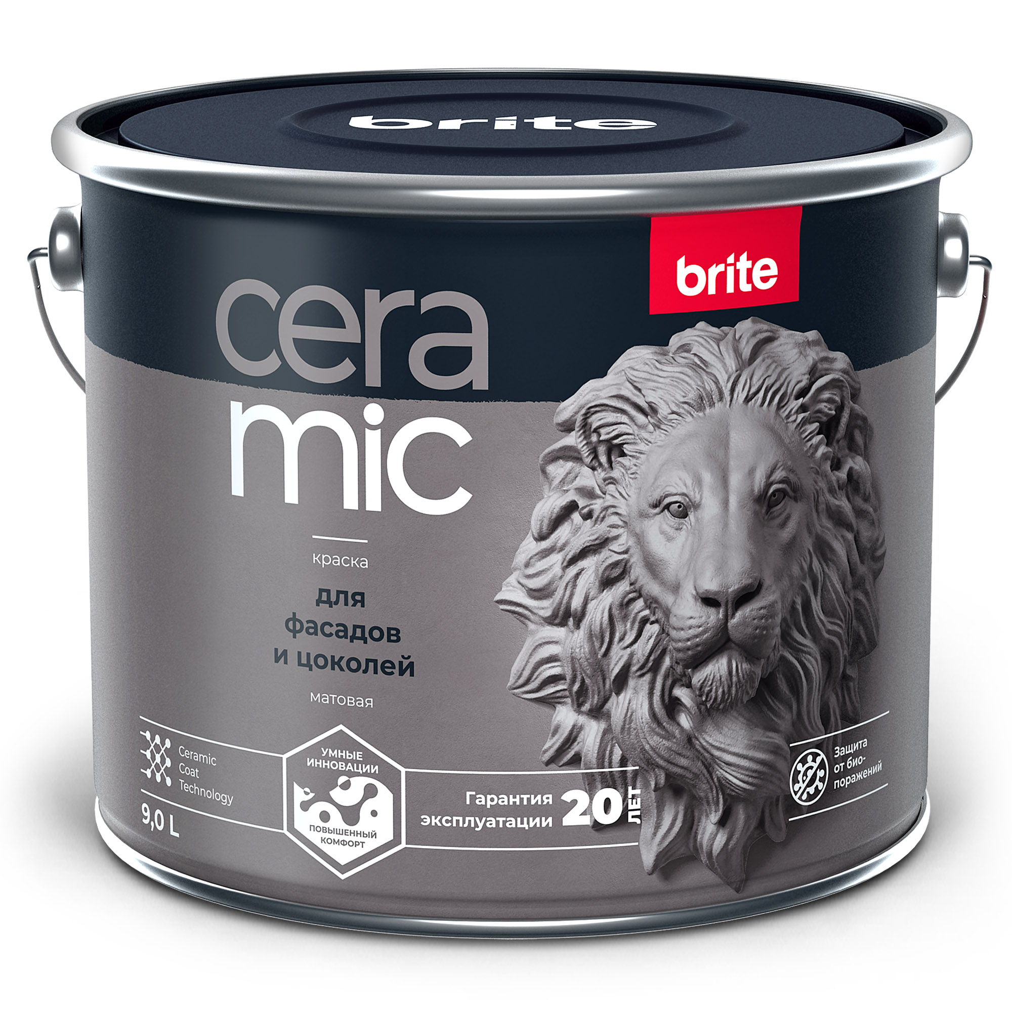 Краска Brite Ceramic для фасадов и цоколей база А, ведро 9 л