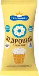Мороженое Гроспирон Кедровый пломбир, ванильный с кедровым орехом и шоколадной глазурью 15%, без змж, вафельный стаканчик, 85г