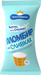 Мороженое Гроспирон Пломбир на сливках 15%, без змж, вафельный стаканчик, 90г