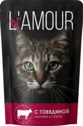 Корм консервированный для кошек L'amour с говядиной в соусе, 75г