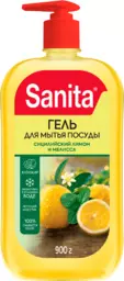 Гель для мытья посуды Sanita Сицилийский лимон и мелисса, от засохшей пищи и жира, 900г