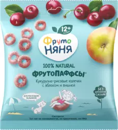 Паффсы кукурузно-рисовые Фрутоняня Колечки с яблоком и вишней, с 12 месяцев, 21г