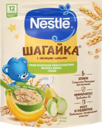 Каша мультизлаковая Nestle Шагайка молочная, с яблоком, бананом и грушей, с 12 месяцев, 190г