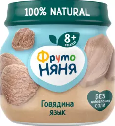 Пюре мясное Фрутоняня Говядина с языком, с 8 месяцев, 80г