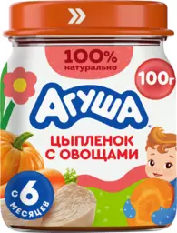 Пюре мясо-растительное детское Агуша Цыпленок с овощами, с 6 месяцев, 100г