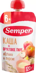 Пюре фруктовое-злаковое Semper Яблочно-персиковое, с кашей, с 6 месяцев, 120г