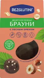 Печенье Bezglutini Брауни с лесным орехом, без глютена и сахара, 96г