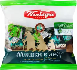Конфеты шоколадные Победа Вкуса Мишки в лесу, с вафельной крошкой, без добавления сахара, 200г