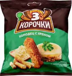 Сухарики ржаные Три Корочки Холодец с хреном, 100г