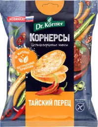 Чипсы рисово-кукурузные Dr. Korner цельнозерновые, с тайским острым сладким перцем, 50г