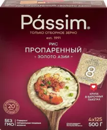 Рис длиннозерный Пассим Золото Азии, пропаренный, в пакетиках, 4х125г