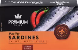 Сардины Premium Club в масле с перцем чили, кусочки, 125г