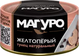 Тунец желтоперый Магуро филе-кусочки в натуральной заливке, 170г