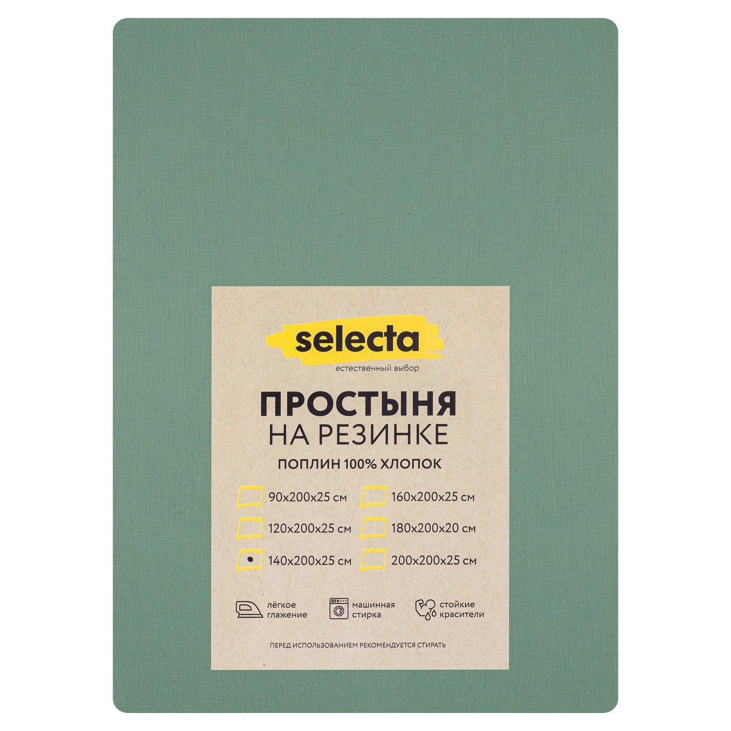 Простыня Selecta 1.5-спальная 140x200 см на резинке зеленого цвета