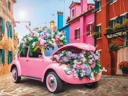 Картина для раскрашивания по номерам 30*40 см Яркая Машина с Цветами (Х-8557)