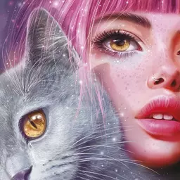 Мозаика алмазная с подрамником полная выкладка 30*30 см Девушка с Котом Феникс (65575)