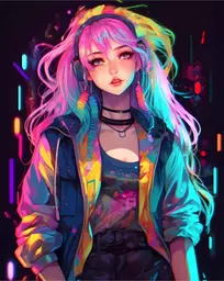 Мозаика алмазная с подрамником полная выкладка 40*50 см Девушка с Цветными Волосами Рыжий кот (Нд-0630)