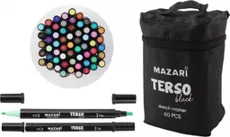 Маркер для скетчинга 2-х сторонний набор 60 цветов Мазари пулевидный/скошенный Терсо Блек (M-15069-60b)