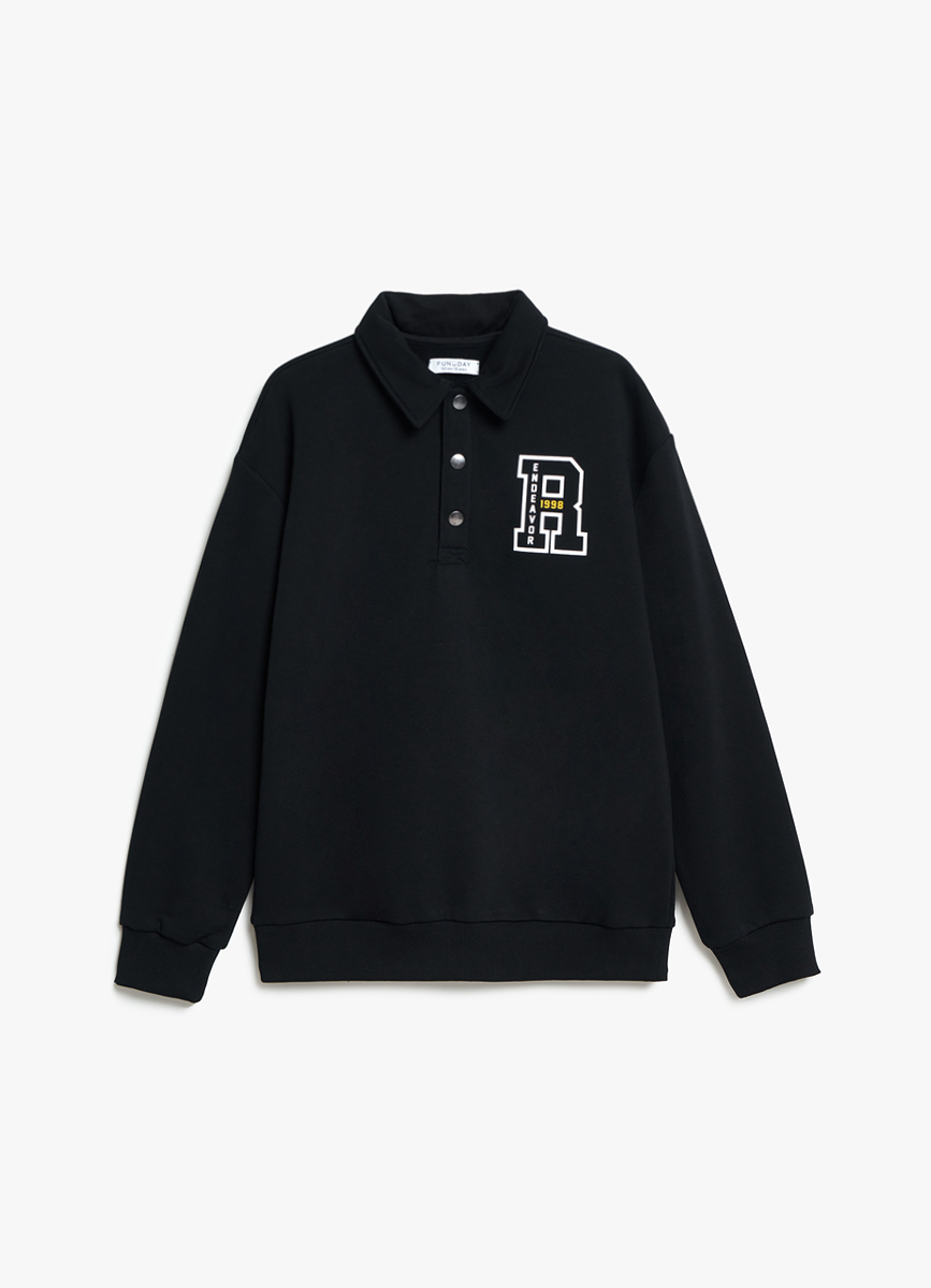 Толстовка черная с рубашечным воротником 34361950299