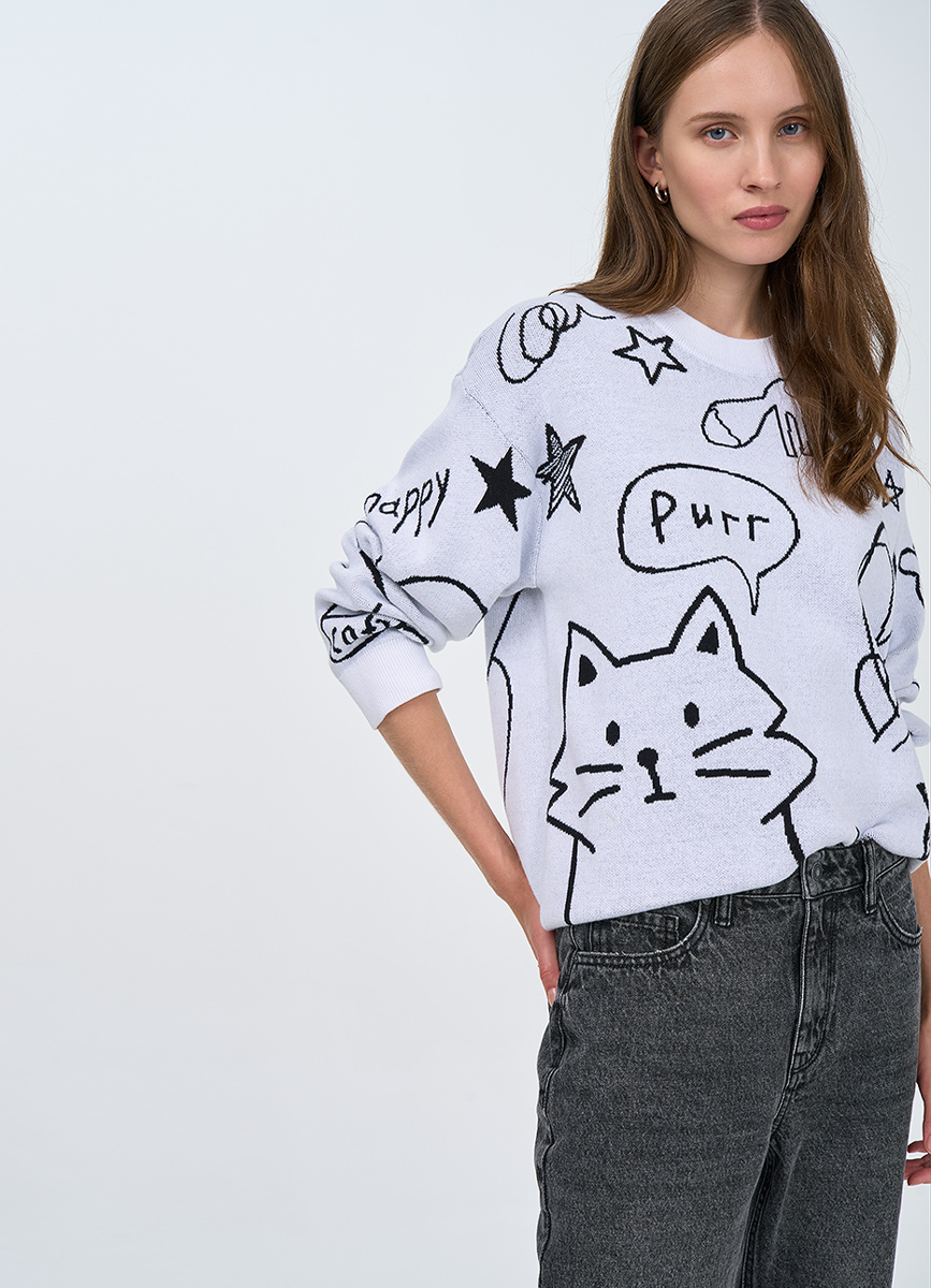 Свитер хлопковый белый с рисунком 33792390299