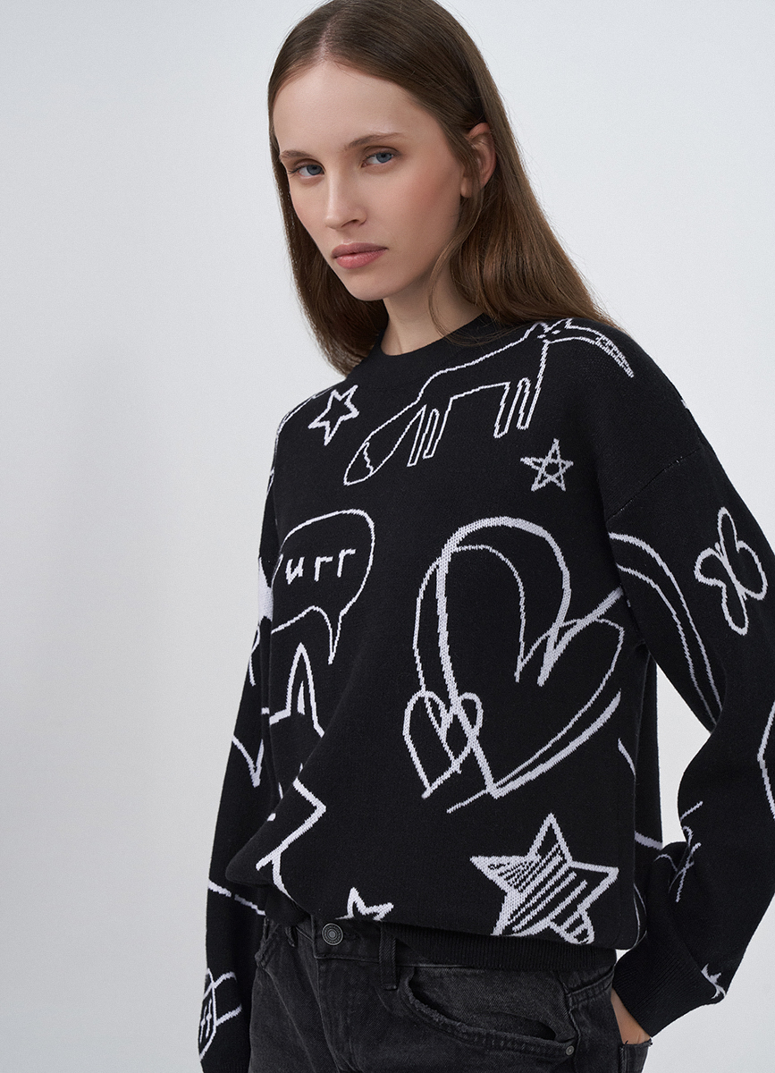 Свитер хлопковый черный с рисунком 33792380299