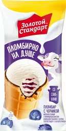Пломбир Золотой Стандарт с Таежной Черникой с черничным наполнителем в вафельном стаканчике 12% Бзмж 93г