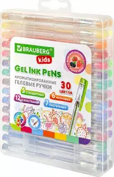 Набор гелевых ручек Brauberg Kids Fruits, ароматизированных, линия письма 0.5 мм, 30 цветов (143823)