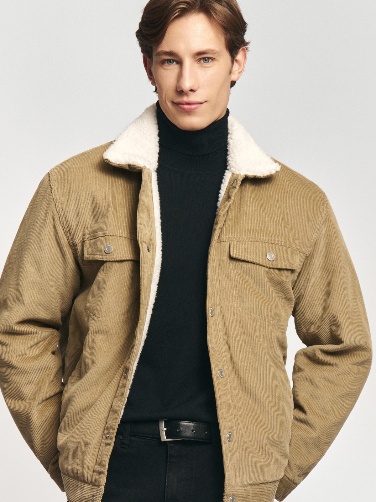 Утеплённая вельветовая куртка на экомеху