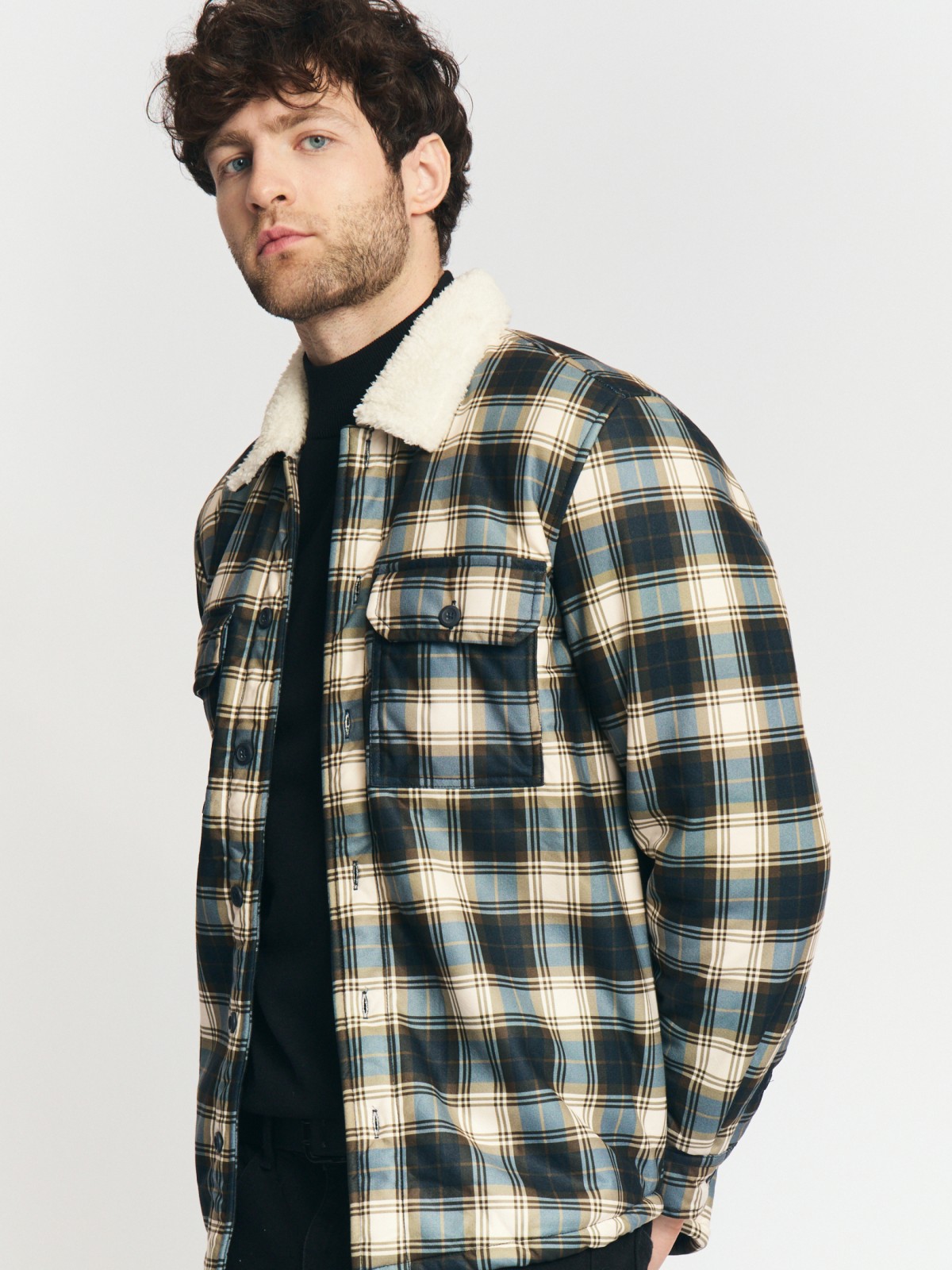 Утеплённая куртка-рубашка в клетку с экомехом