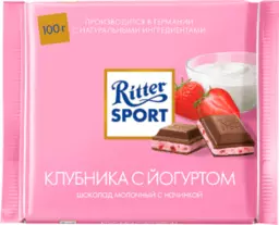 Риттер спорт Клубника с Йогуртом. Шоколад молочный с клубнично-йогуртовой начинкой Шоколад
