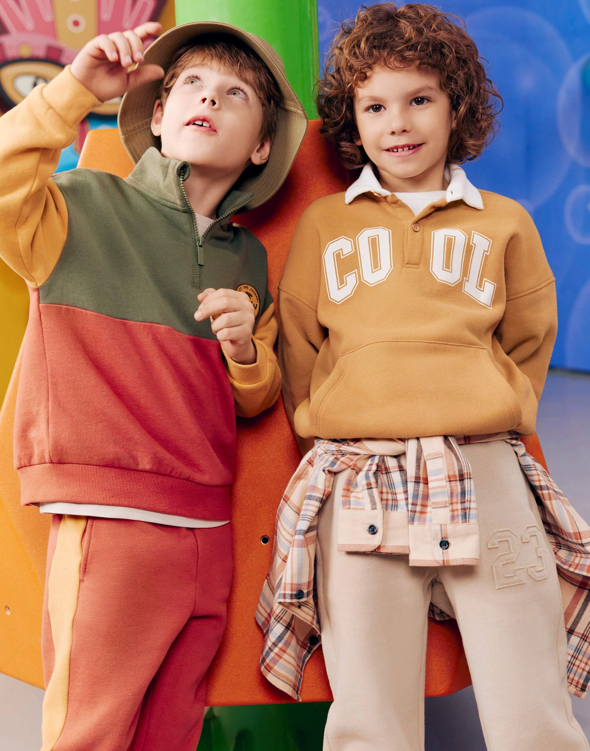 Горчичный свитшот oversize с воротником и принтом для мальчика Bac014224-1