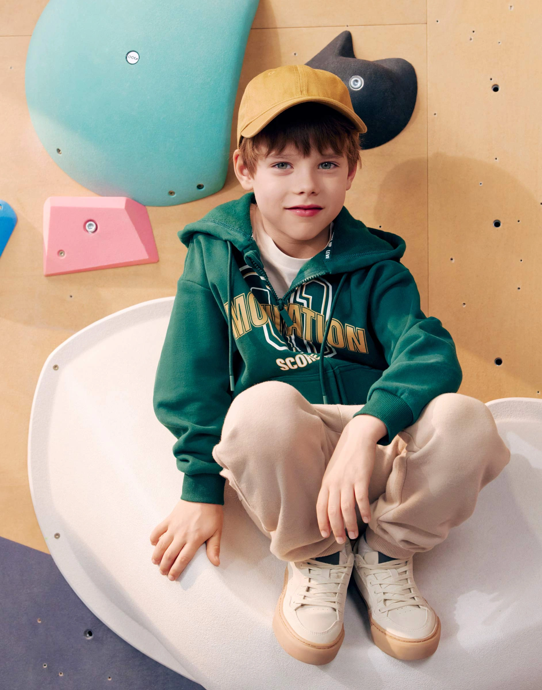 Тёмно-зелёное худи на молнии oversize с принтом для мальчика Bac014126-1