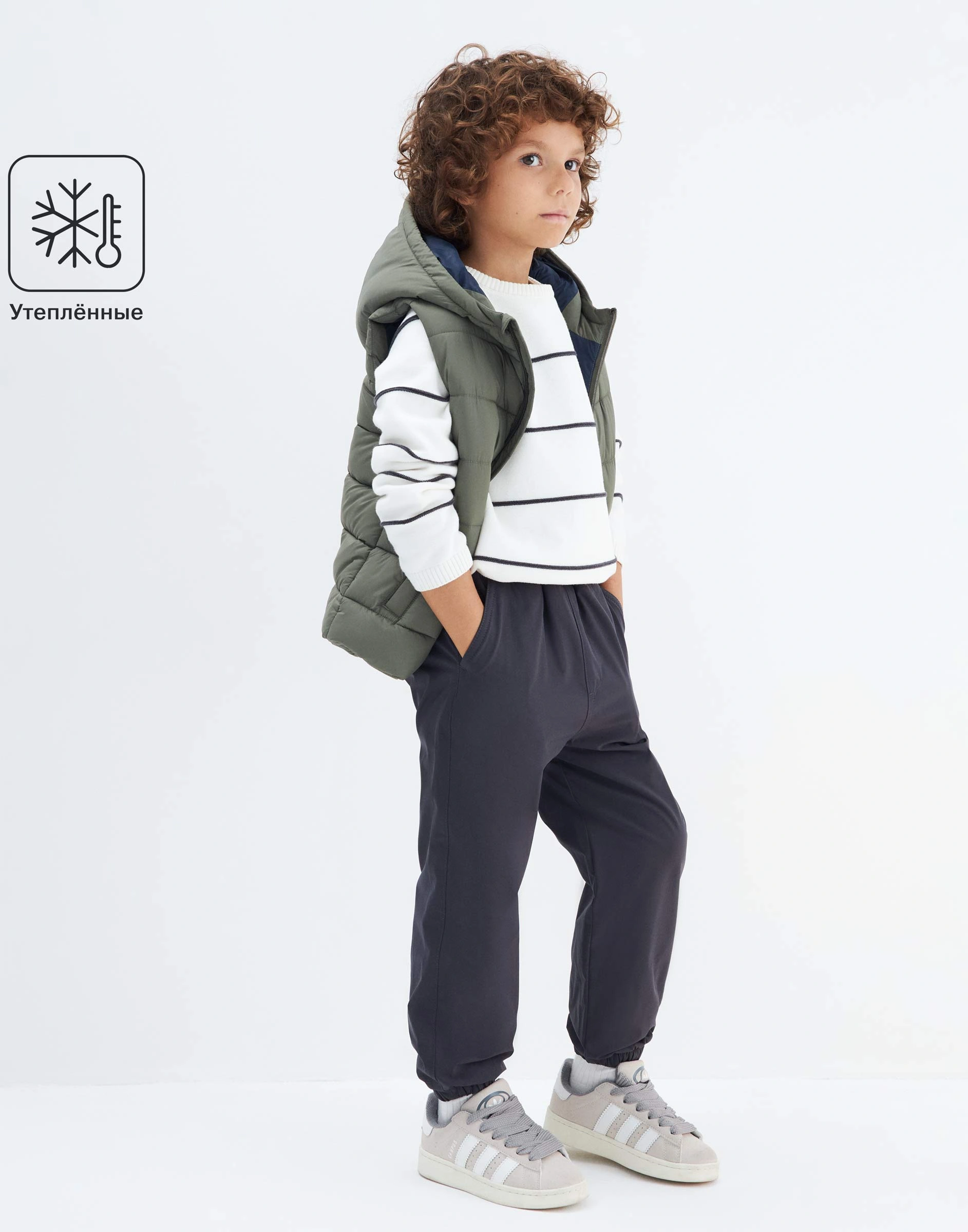 Тёмно-серые утеплённые брюки для мальчика Bow002284-1