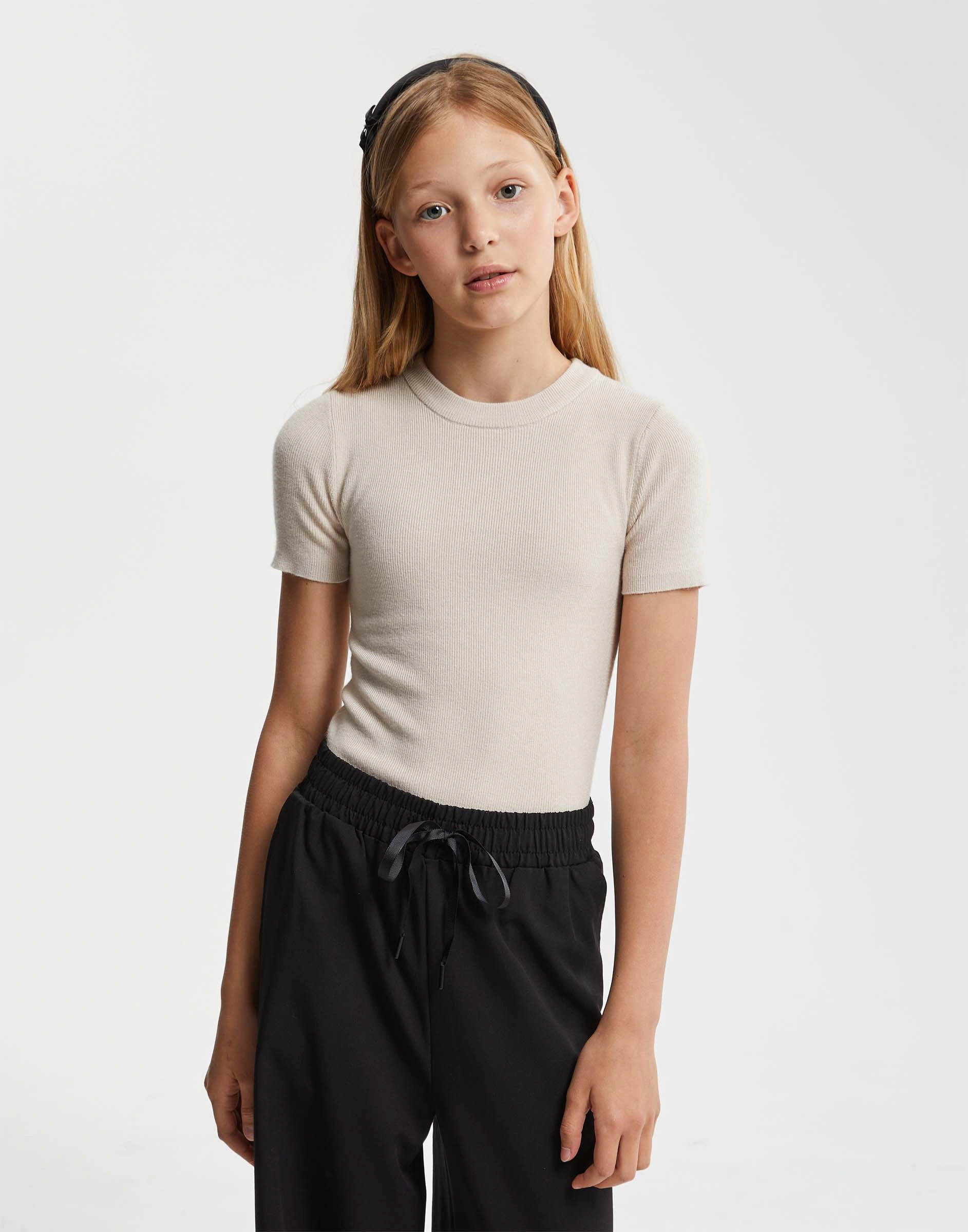 Бежевый укороченный джемпер с коротким рукавом Gsw007971-2