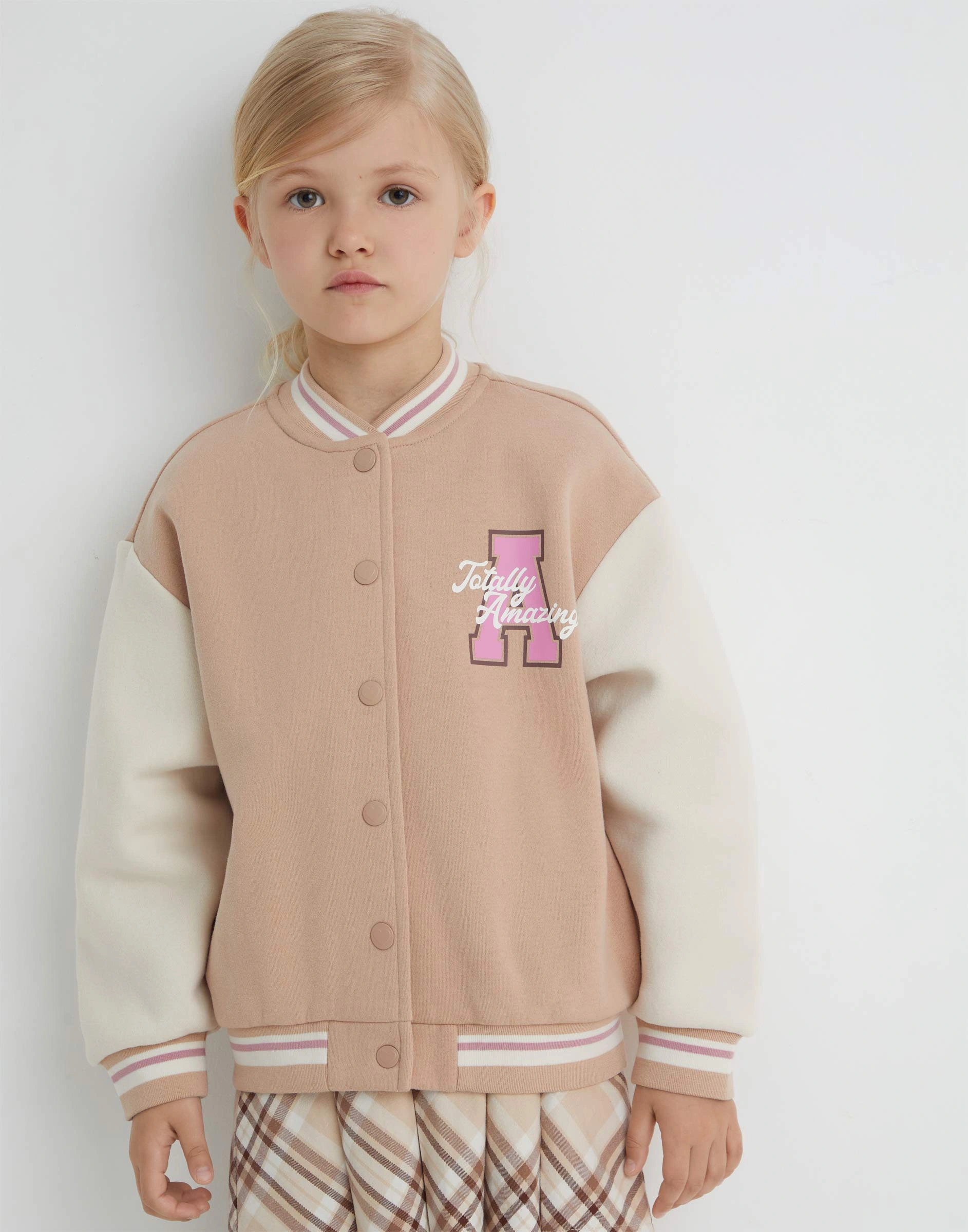 Бомбер oversize колор-блок с принтом для девочки Gac024782-1