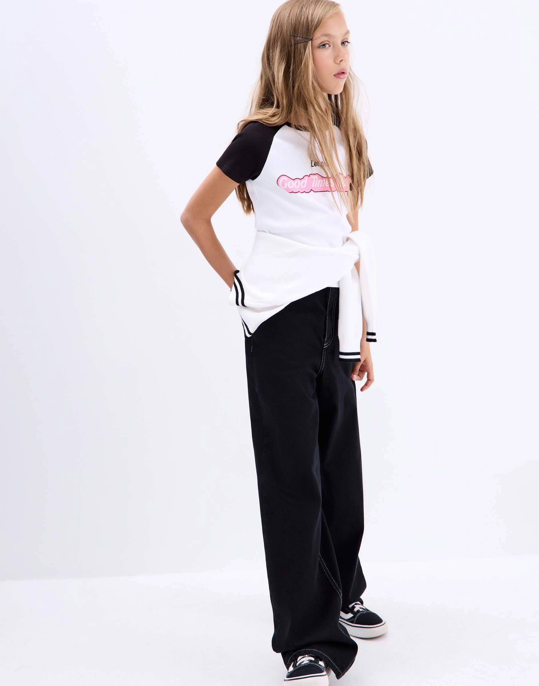 Кроп-топ в рубчик колор-блок с принтом Gkt026757-1